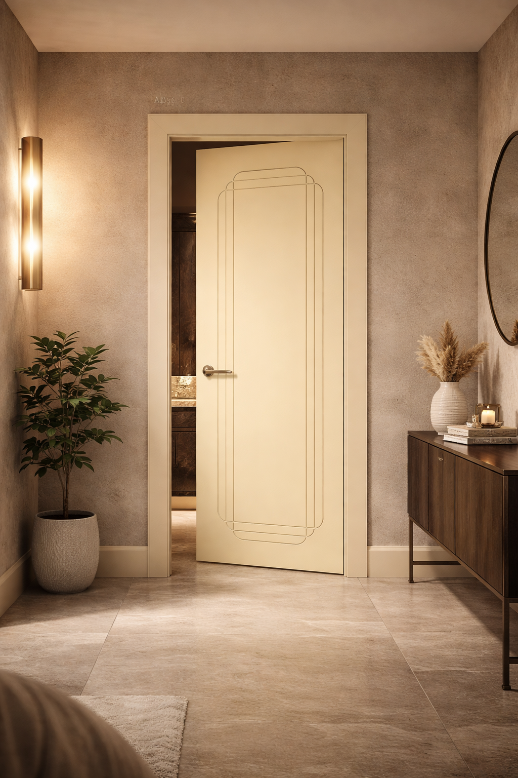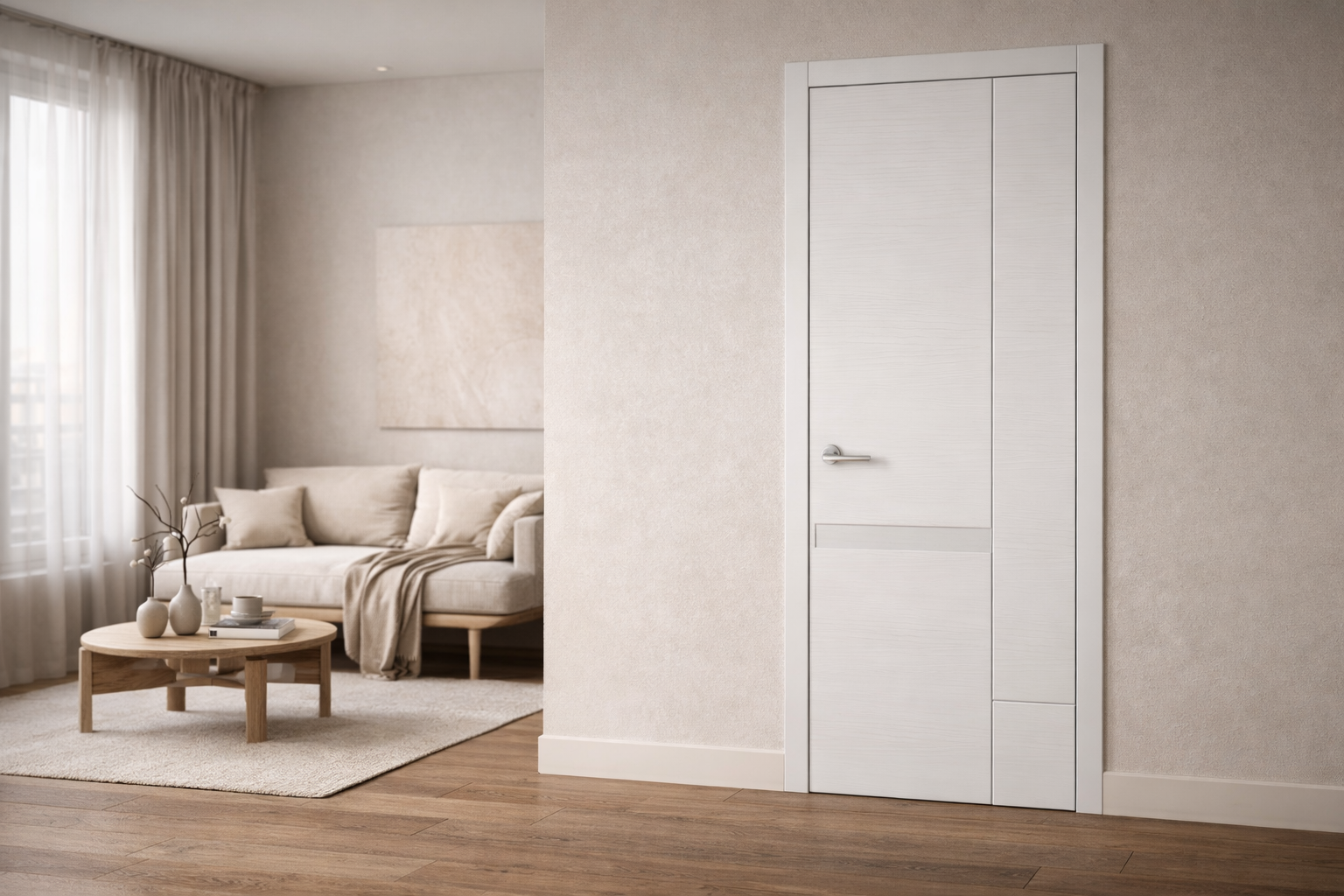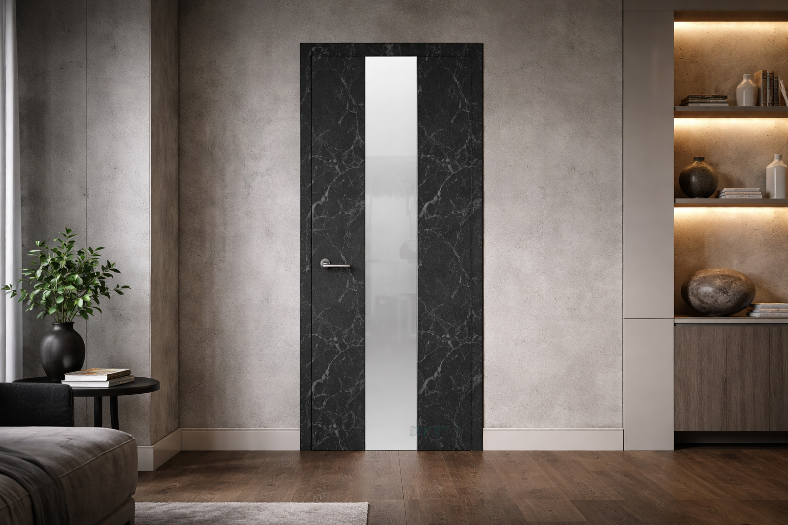 Да, и это один из самых распространённых контрастных решений. Тёмная дверь на светлом фоне создаёт чёткий графический акцент. Важно, чтобы контраст был осознанным и поддерживался другими тёмными элементами в интерьере – мебелью, фурнитурой, текстилем.