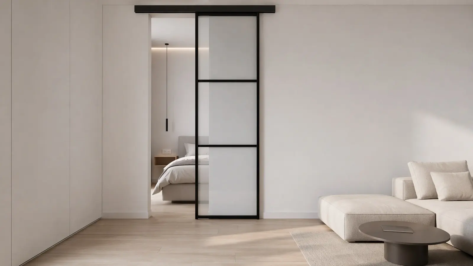 Наиболее универсальны стеклянные раздвижные системы в алюминиевом профиле. Они сохраняют свет, не занимают место при открывании и подходят для большинства сценариев зонирования – от студии до кухни-гостиной. Выбор заполнения – прозрачное, матовое или рифлёное – позволяет настроить уровень приватности под конкретное помещение.